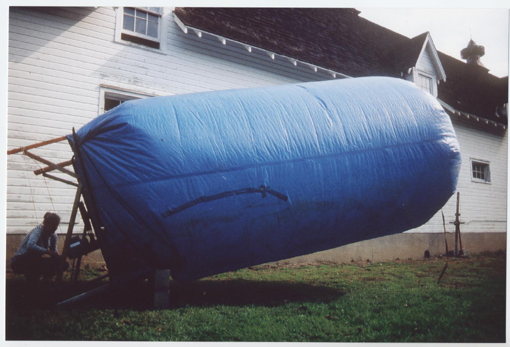 Experimentlelle Vorläuferarbeiten fanden in Monauk auf Long Island während einer Residency in der Edward F. Albee Foundation bereits 1992 mit gefundenen Planen und Ventilatoren statt.